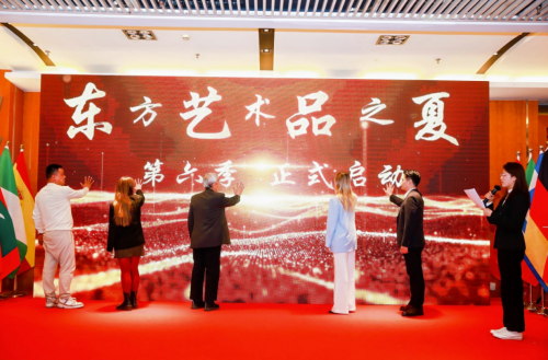 随后,精彩的儿童独舞《次仁拉索》为现场带来了灵动与活力。活动的核心环节——启动仪式将气氛推向高潮。在全场注目下,郭立民先生、张重生先生等多位启动嘉宾共同将手按向启动屏,随着倒计时归零,“东方艺术品之夏第六季”正式宣告扬帆起航,象征着新一季艺术探索与对话的璀璨开启。